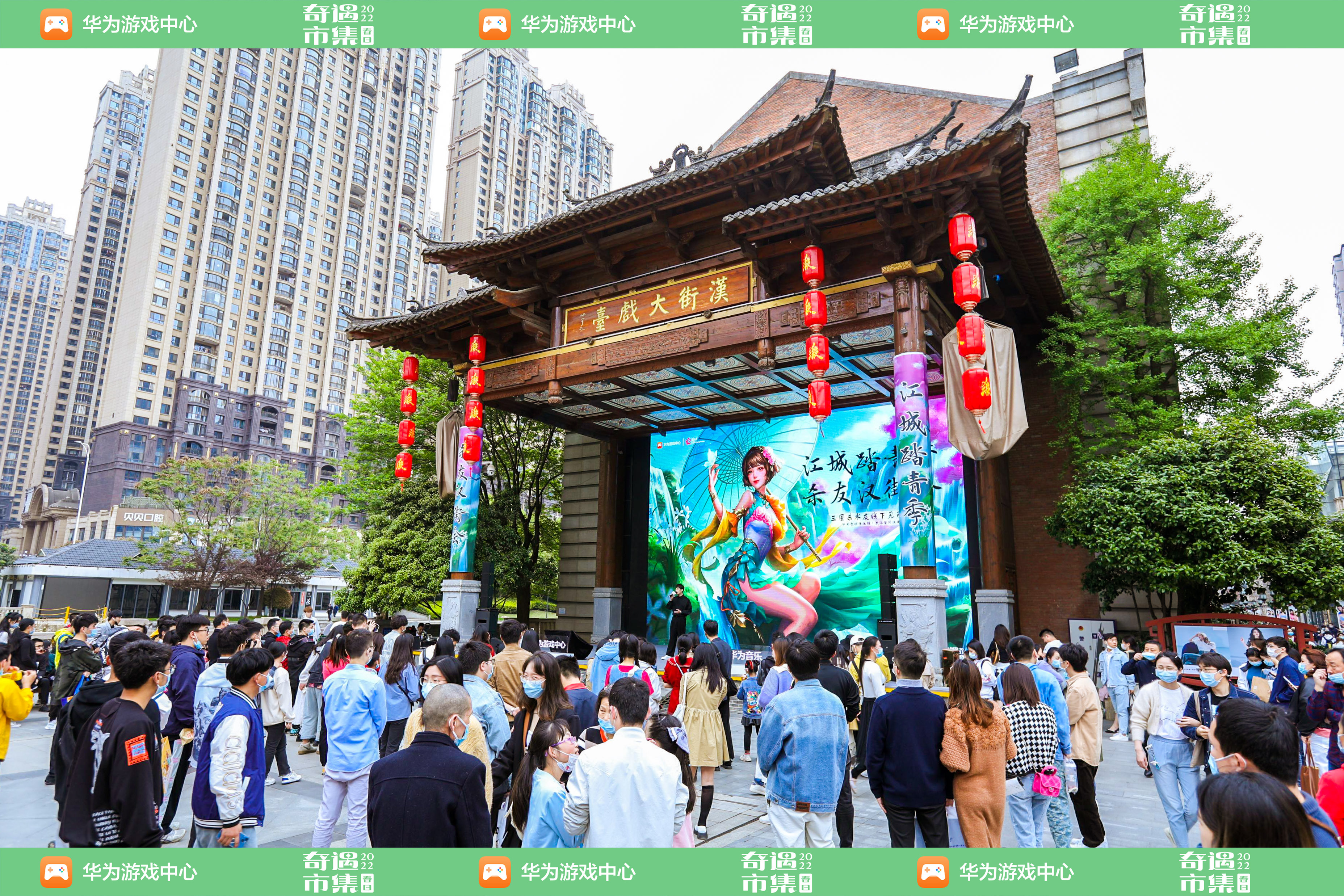 更值得一提的是,在汉街大戏台,《三国杀》上演了高还原度coser表演,邀请了华为音乐鹿蜀计划知名古风唱作人墨臻和卡布kano现场演唱,百人围观一起沉浸在古风世界里,共同分享这个游戏奇遇时刻。