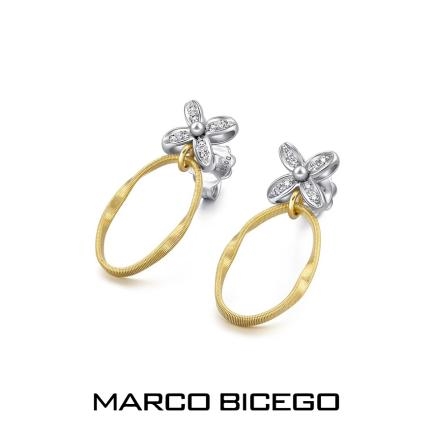 恍如穿越神秘沙丘,霎那间巧遇惊艳花丛。Marrakech Onde 副系列是 Marco Bicego 标志性 Marrakech系列的延伸,珠宝设计重新演绎经典的 18K 手织黄金弦线 「The coil工艺」, 打造出独特不规则的波浪椭圆形。变幻多姿的线条勾勒出层层沙丘,尽显神秘莫测的自然韵味;盈盈钻石与金色线条精巧交织,宛若绿洲间盛放朵朵闪耀之花,孕育出流光溢彩的手工技艺,映衬着女性时尚优雅的动人气质。涟漪线条在光影间自在流动,晶莹之花凝固生命的靓丽姿态,赋予日常别具一格的感官之美。