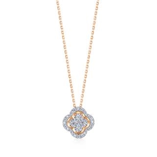 向烟花许个愿,四叶草花团锦簇在火树银花与车水马龙中肆意绽放,实现所有的美好畅想。「钻之颂」花悦之颂系列新品以象征幸运的四叶草为设计灵感,将无限好运带来你的身边。18K 白红分色黄金钻石项链与戒指栩栩如生,刻画花卉舒展绽放的曼妙姿态,镶满碎钻的花瓣围绕闪耀主石尽显华丽璀璨,光影交错下夺目钻光熠熠生辉,谱写悠扬绚丽的欢愉颂歌。